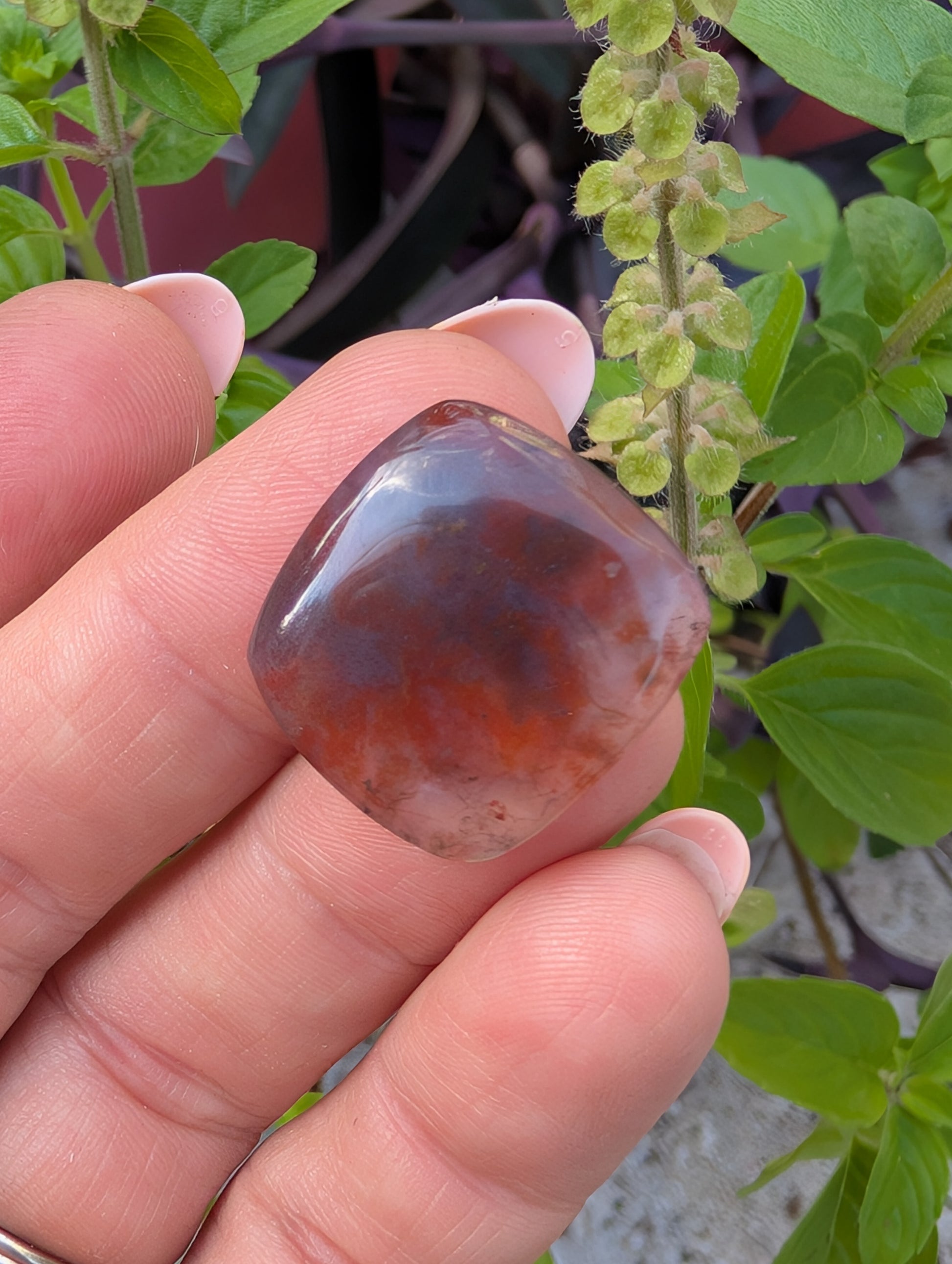 Stunning piece of Moss Agate. Beautiful color pattern and red tones. The moss is nice and visible! The coloration of this cab reminds me of swirls of paint! So bright and vibrant, These cabs are full of life! This particular Cabochon weighs a total of 13.1grams and measures approximately 21mm top to bottom and 20mm side to side. Nice square shape. These eye catching cabochons will make gorgeous center pieces for Jewlery making or whatever your creation may be! What you see is what you get, no random grabs, you will recieve the cabochon pictured if purchased. All pieces are packaged and shipped with eco friendly materials.