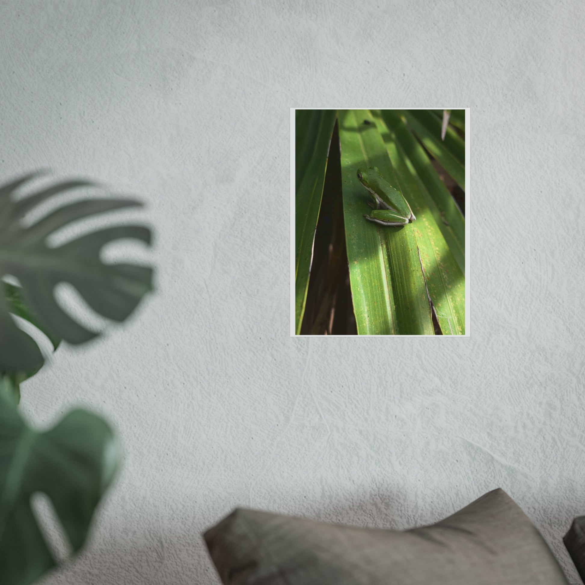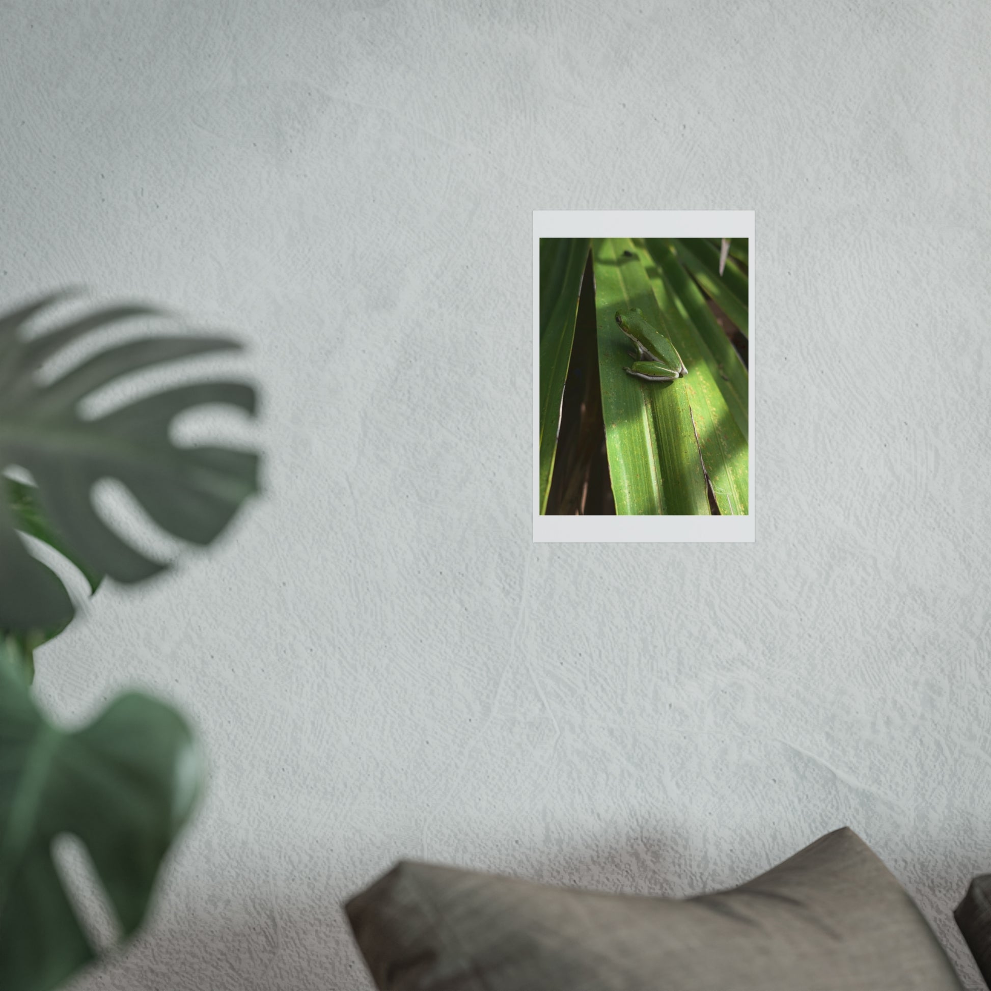 Beautiful Floridian Green Tree frog enjoy his morning perched on a palm frond. 8x10 matte print.