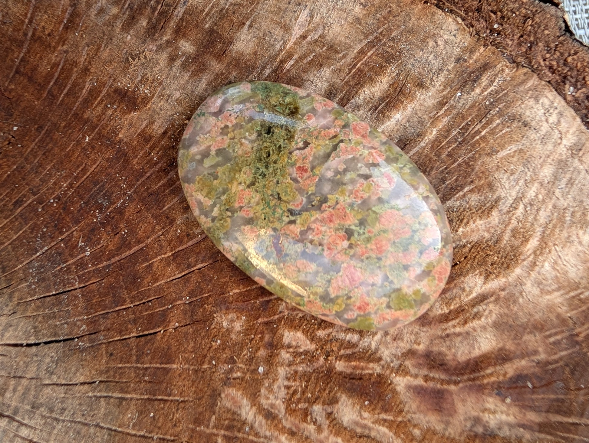 Unakite cabochon. Oval . Pink Green 44mm x 28mm