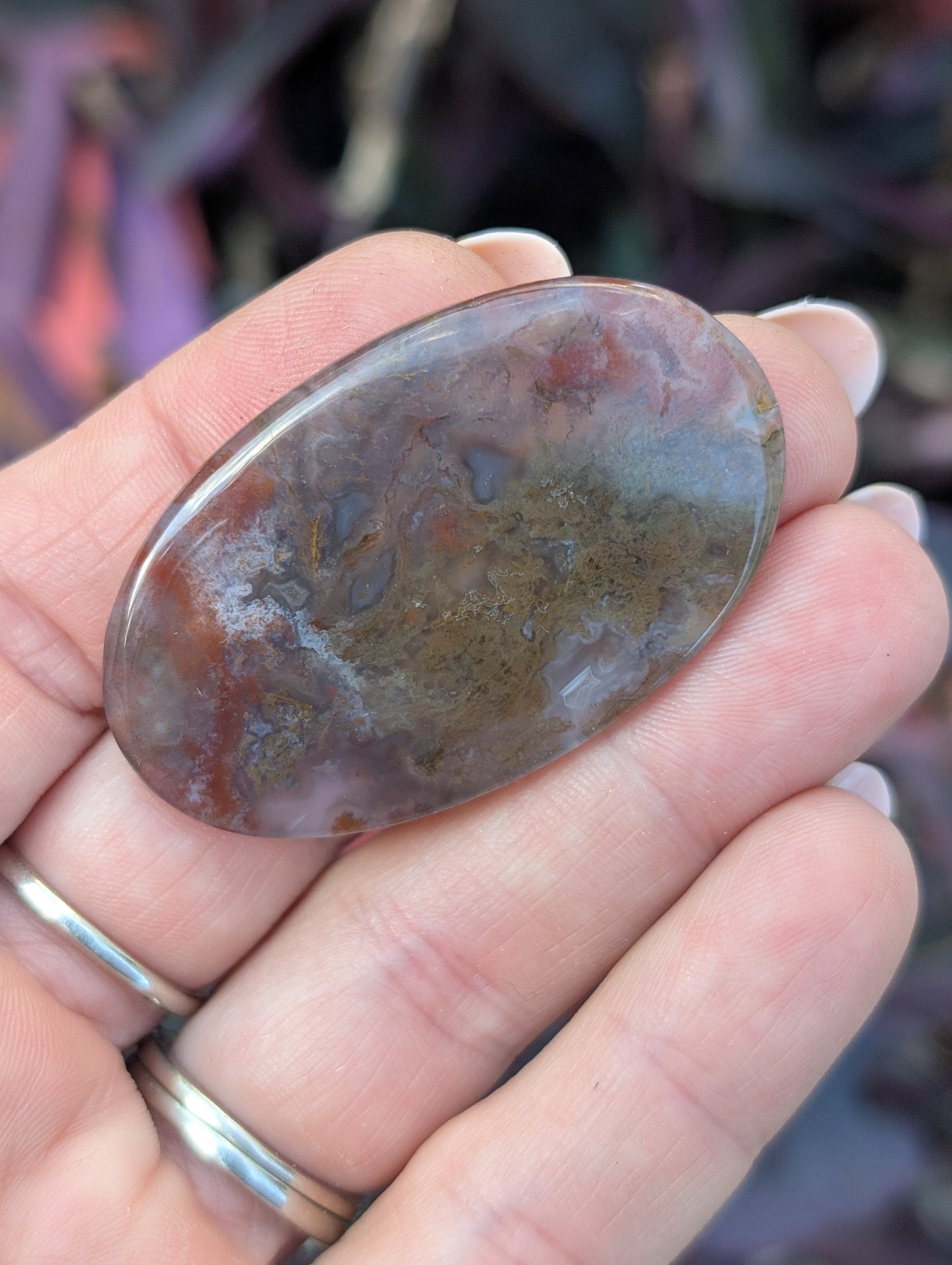 Moss agate cabochon. Large Oval. Green and red. 47mm x 29mm